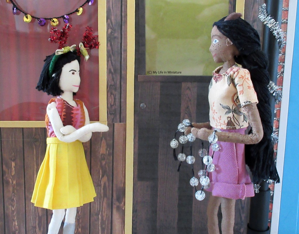 ….Sarah’s helping Tiffany and Petra decorate the stores for the holidays.