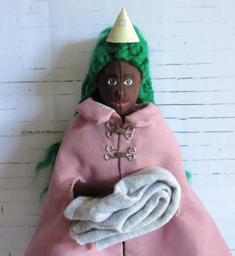I made Hazel’s in grey because I plan to make her wardrobe more pastel-toned, so neon pink would stand out a bit! It’s a colour that goes with everything, so it should be really versatile. It’s also lighter than a cape, and easier to move in (according to Hazel).